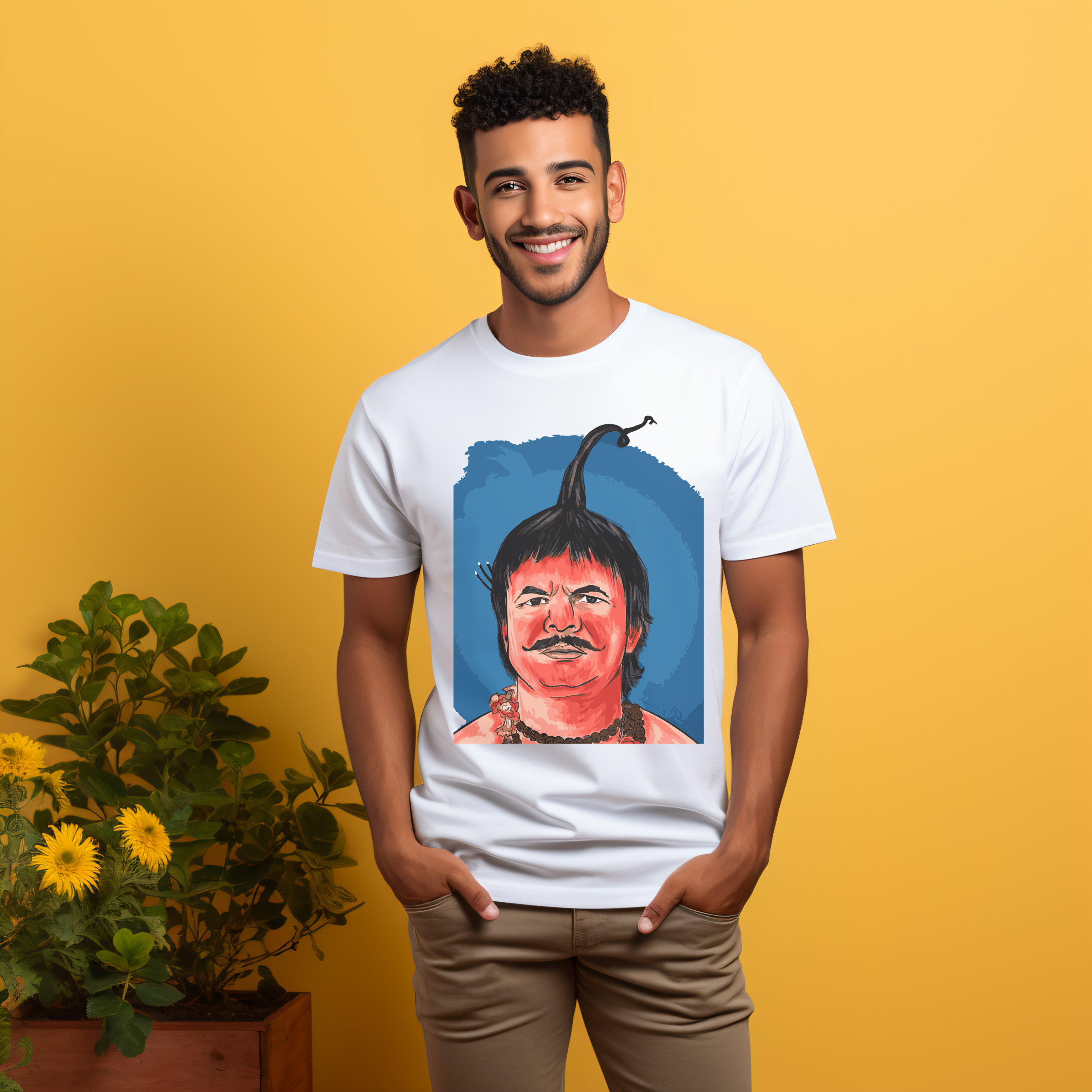 Bring character and culture into your everyday wardrobe with the Chota Pandit Portrait Premium T-Shirt. Designed on a clean white base, the vibrant illustrated artwork creates a strong visual impact, blending pop-art styling with a playful desi personality.